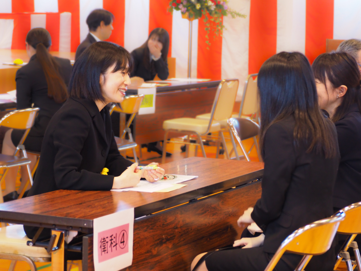 本学では、新生活への不安を少しでも和らげるため、入学式後に「入学生・保護者・教員」による三者面談を実施しています。
