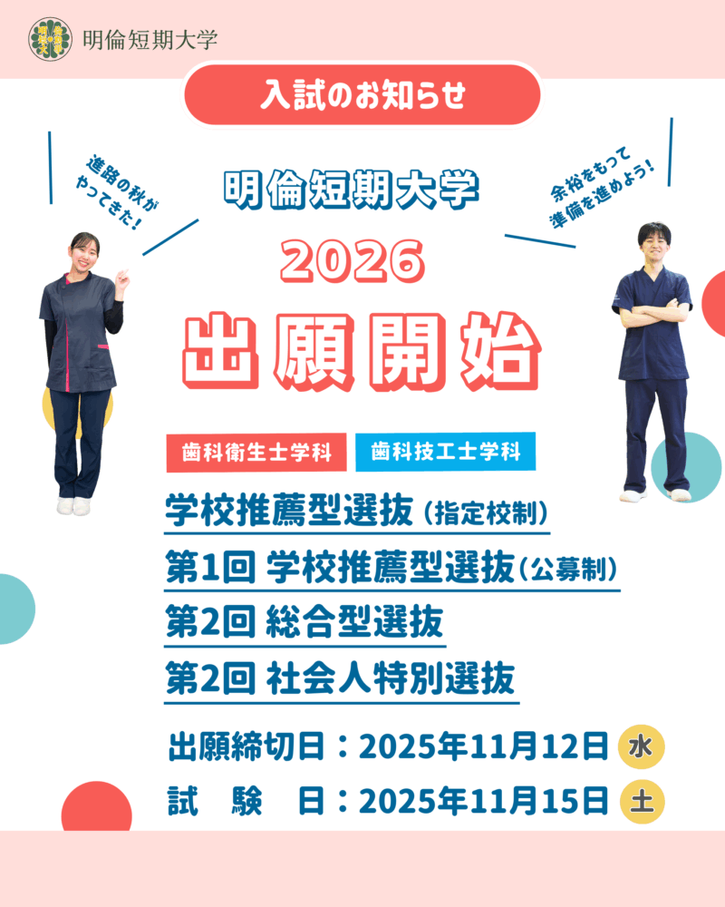 第1回 総合型選抜、社会人特別選抜の出願開始のお知らせ