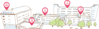 | 部屋備品 | ベッド、ロッカー、机、椅子、本棚、冷暖房設備、インターネット専用回線(情報コンセント:RJ45)、 地上デジタル・BSデジタル・CS110度共同アンテナ回線 |