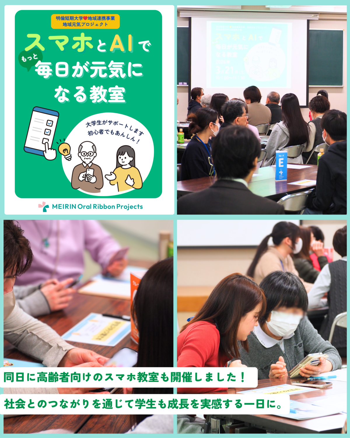 また同日には、地域の高齢者向けイベントとして、『大学生と学ぶ!スマホとAIで毎日がもっと元気になる教室』も開催しました。
