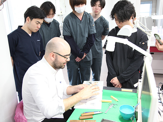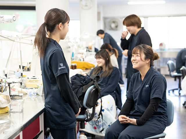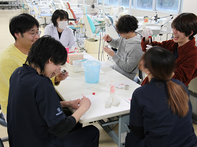 1年次は歯科理工学の知識や歯科技工装置の製作に関わる基礎知識およびチーム歯科医療に欠かせないコミュニケーション能力を養います。