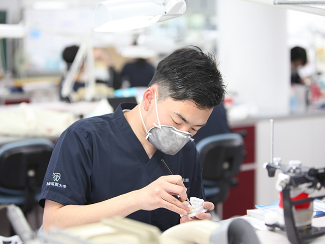 人と向かい合うときは、相手の目や口元にどうしても目がいきます。会話のときはなおさらです。だから、誰しも口元の綺麗さを望みます。審美的な要素だけではありません。歯や口は、消化器官の入口として「噛み、磨りつぶして、飲み込む」という食べる機能が健康長寿の必須条件です。金属やセラミックの固定性の入れ歯、取り外しのできる入れ歯、インプラントといった人工臓器を製作する歯科技工士の役割は、単に人々の生命を維持するということに留まらず、好きなときに好きなものを食べられることで豊かな人生(QOL)を保障する大変やりがいのある仕事です。本学では、歯科技工技術の着実な取得と向上を考えた充実した教育プログラムを準備しています。